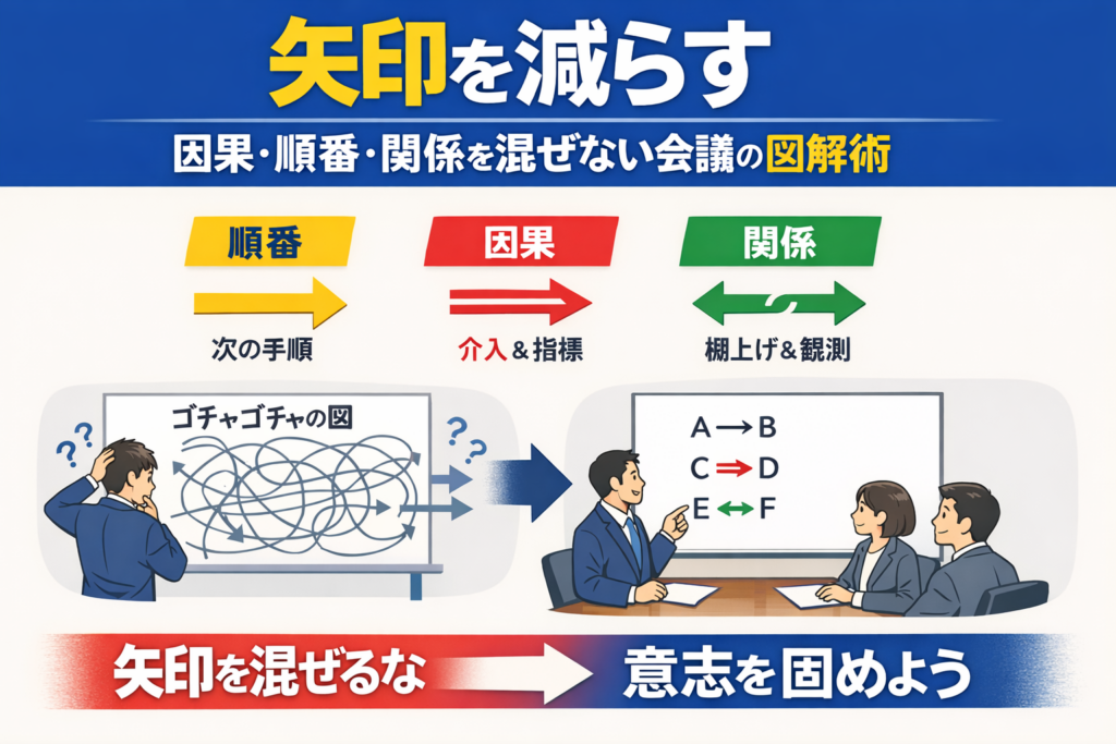 矢印を減らす——因果・順番・関係を混ぜない、会議の図解術